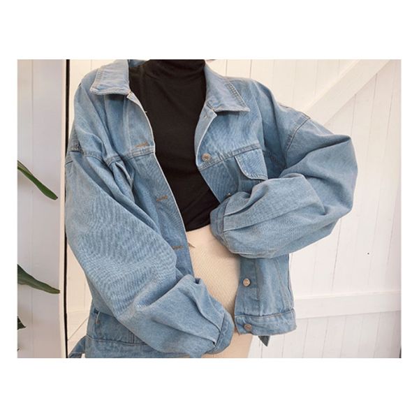 Printed Women ' S Denim Coats & Jackets Light Wash Trucker Over Size Fit Images |